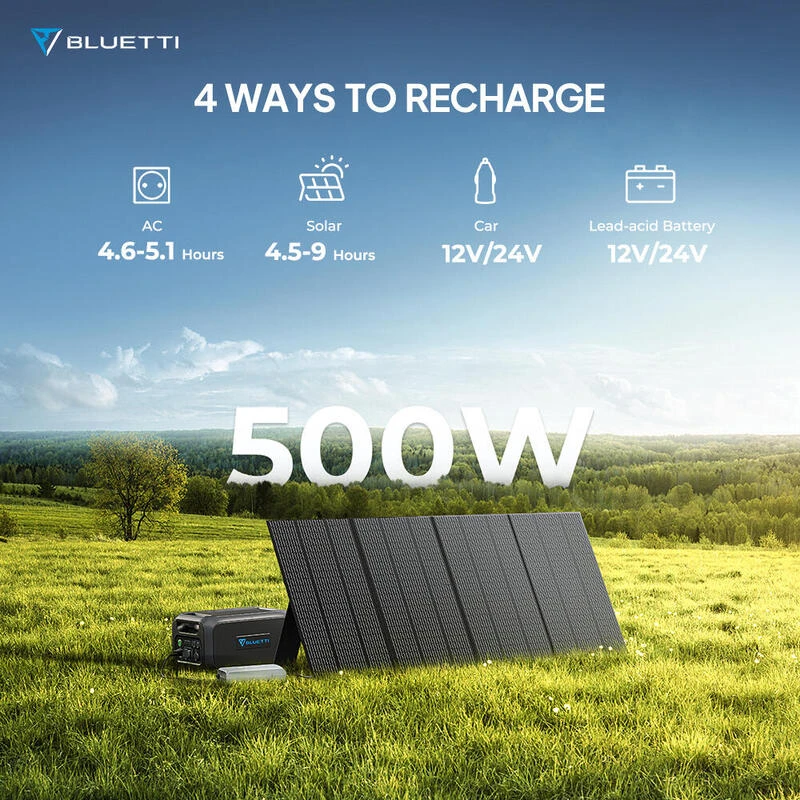 Le BLUETTI B230 a une capacité de 2 048 Wh et prend en charge la charge des batteries solaires, CA, de voiture et au plomb, ce qui en fait une source d’alimentation polyvalente.