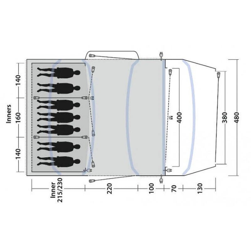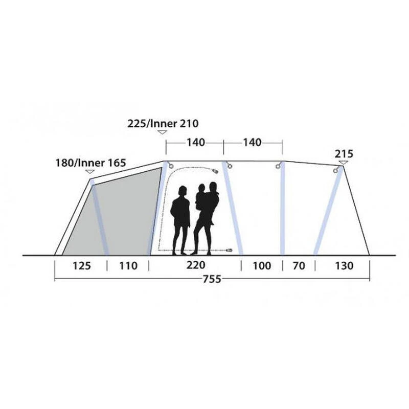 La tente de camping Outwell Jacksondale 7PA est un modèle gonflable en polyester composée de 3 chambres pouvant accueillir 7 personnes.